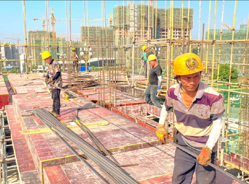 (科技城集中发展区(涪城区属范围)产业配套用房及周边景观提升建设项目,采取“做两头、歇中间”及轮换作业的办法,避免工人们高温曝晒、疲劳作业,预防中暑。)