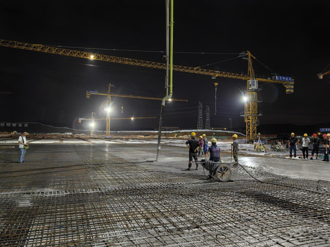 三伏天气,骄阳似火。创明新能源项目现场仍是一片繁忙景象,塔吊林立,机械轰鸣,项目管理员及工人们奋斗在高温一线,采取“避高温”“白+黑”有力措施昼夜奋战,如火如荼推进项目建设。