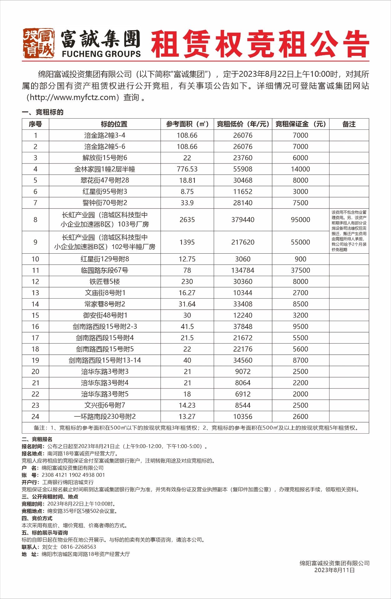租赁权竞租公告