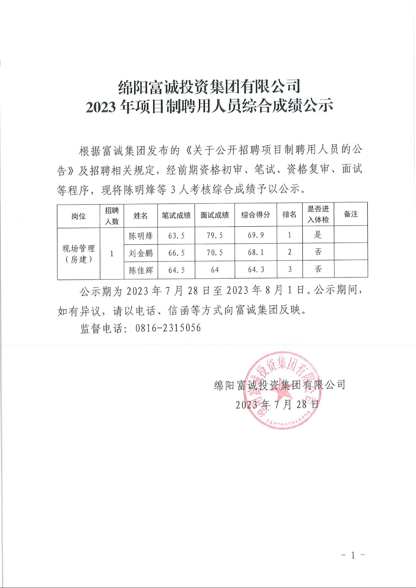 bw必威西汉姆联官方网站2023年项目制聘用人员综合成绩公示