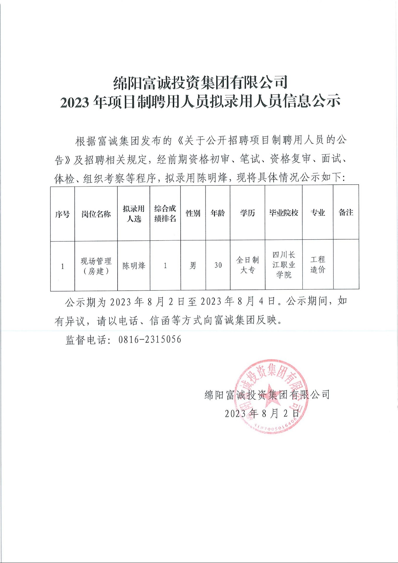 bw必威西汉姆联官方网站2023年项目制聘用人员拟录用人员信息公示 >