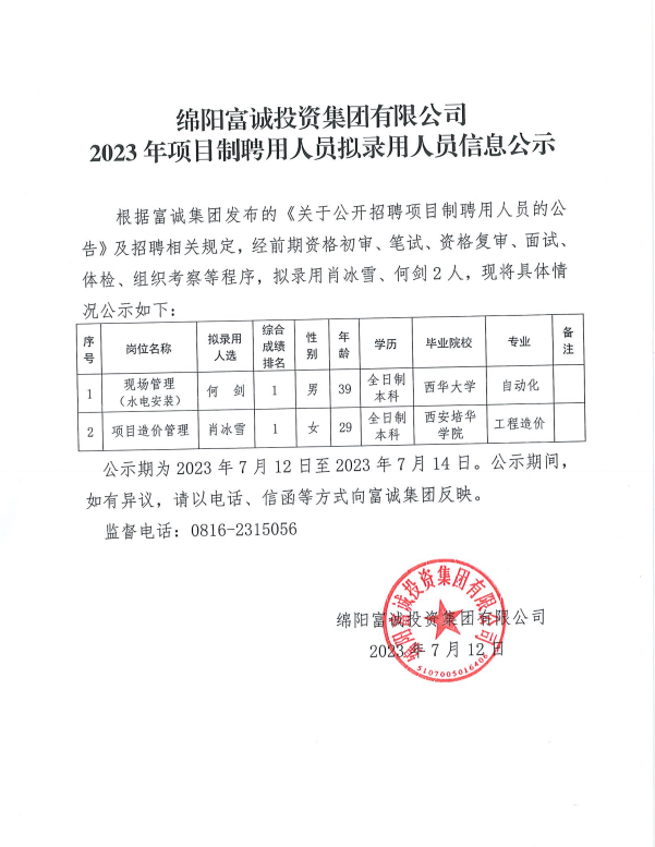 公 告 绵阳富城建筑工程有限公司本次需通过竞争性谈判公开招募创明项目西南侧及南侧红线处边坡治理工程勘察服务单位,此次报价采用总价报价方式进行。报名时请提交以下材料:1、提供营业执照复印件(三证合一,加盖鲜章),能提供增值税专用发票。2、法定代表人身份证:法定代表人亲自到场的出示身份证原件,存复印件。若法定代表人不能亲自到场的,被委托人应出具法定代表人授权委托书原件和被委托人的身份证及法定代表人授权书(身份证查验原件,存加盖鲜章复印件)。3、具有甲级岩土工程勘察资质(提供复印件加盖鲜章)。报名时间:2023年7月3日至2023…… [更多]